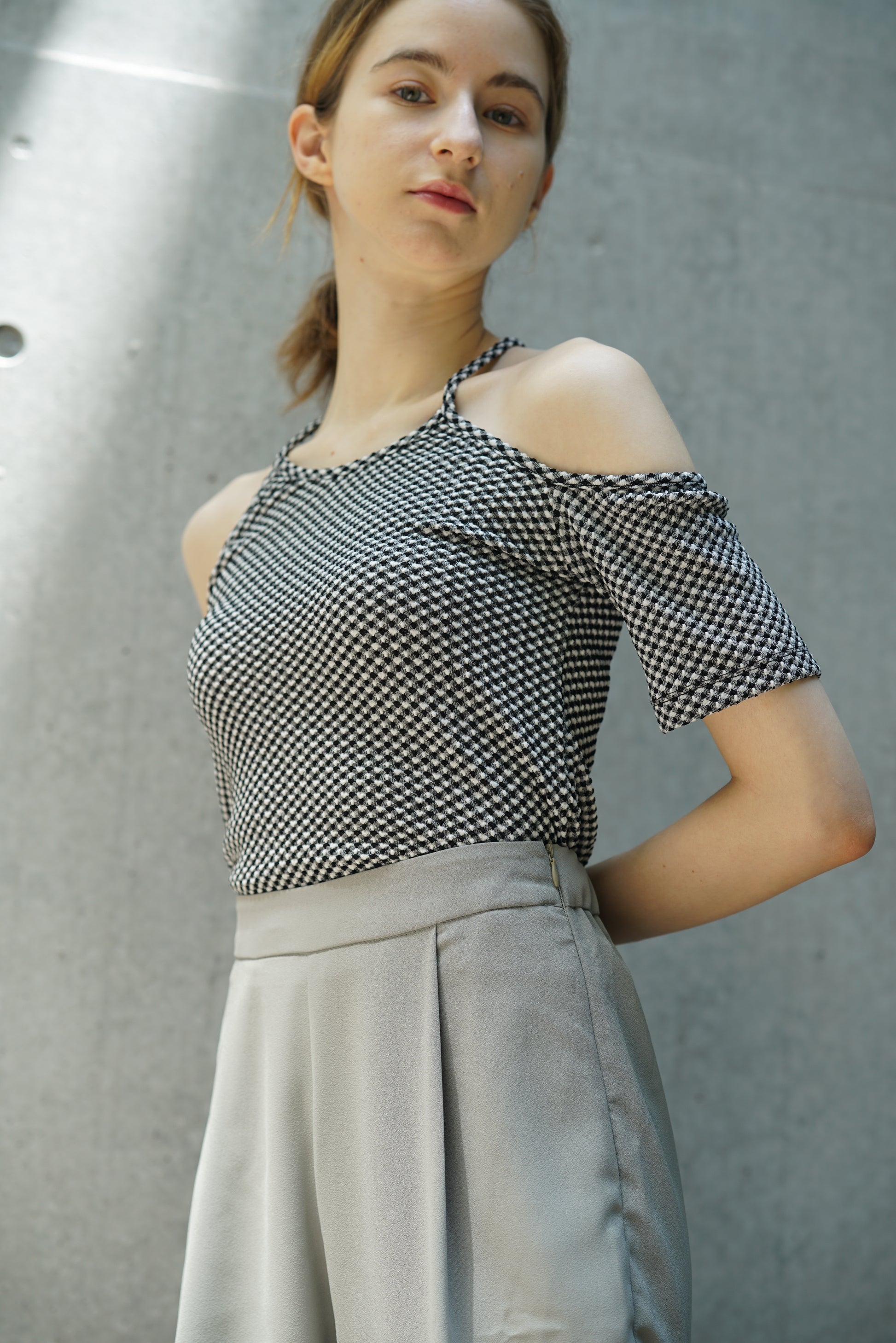 このギンガムチェック柄のブラウスは、春夏シーズンにぴったりのアイテムです。2WAYデザインで、前後どちらでも着用可能なため、シンプルですっきりとしたコーディネートを実現できます。また、タイトなトップスなので、着こなしの幅が広がると同時に、スタイリングのしやすさも魅力的です。洗練されたギンガムチェック柄が、着る人の魅力を引き立て、さまざまなシーンで活躍すること間違いありません。このブラウスは、ファッションのトレンドを取り入れつつ、着心地とスタイルを両立させたい方に最適な一枚です。