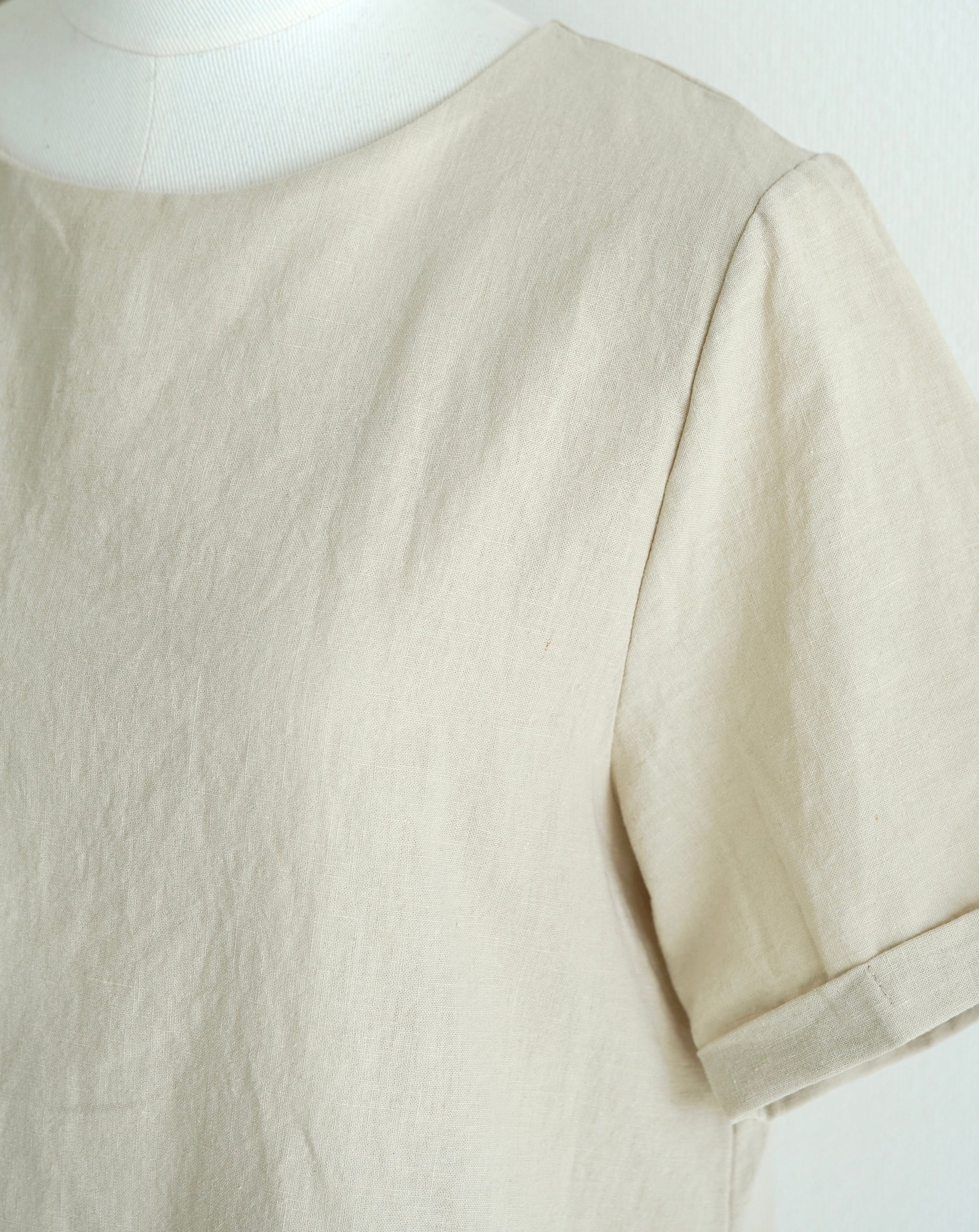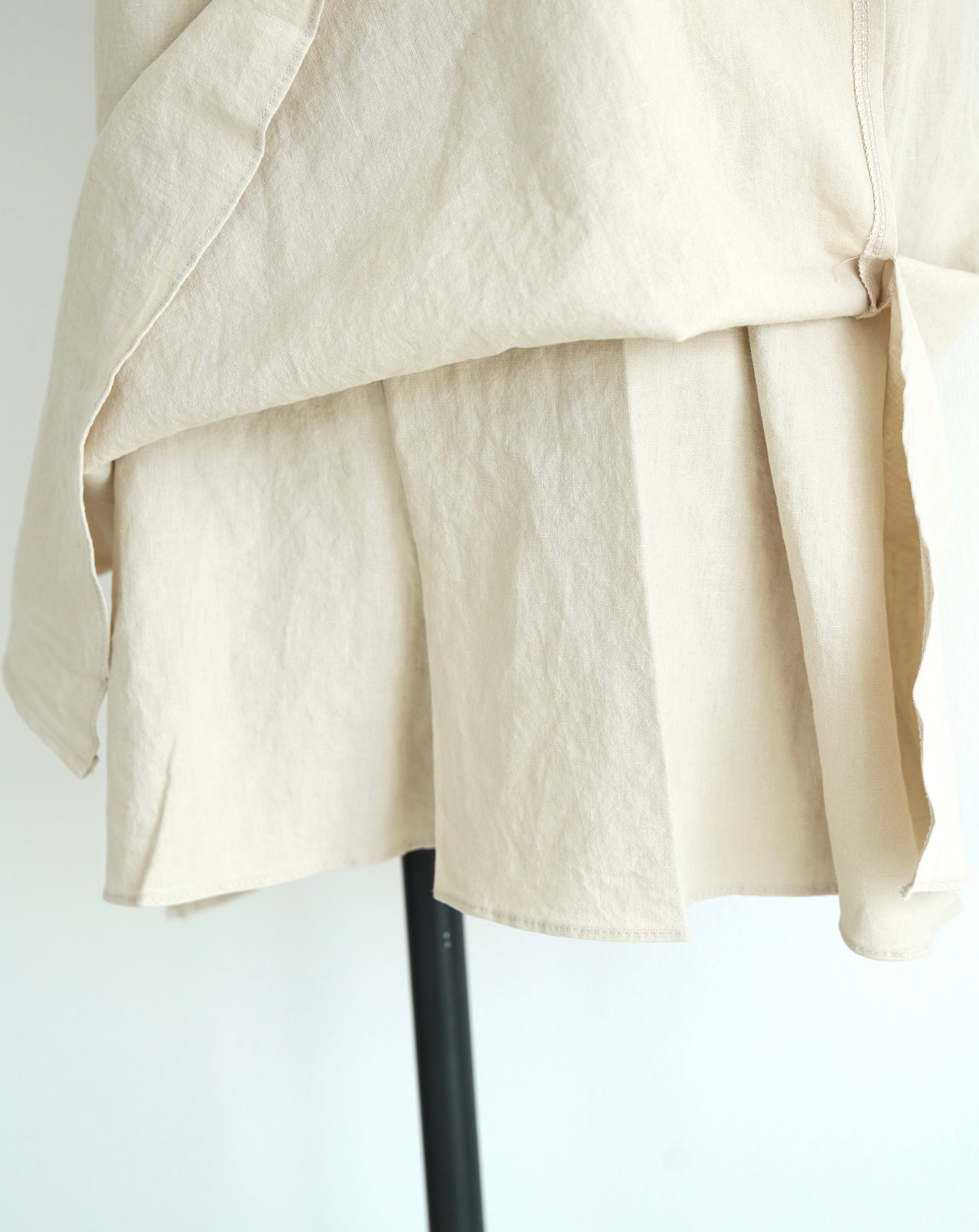 リネン素材なので涼し気でカジュアルな着こなしが可能なナチュラルデザイン