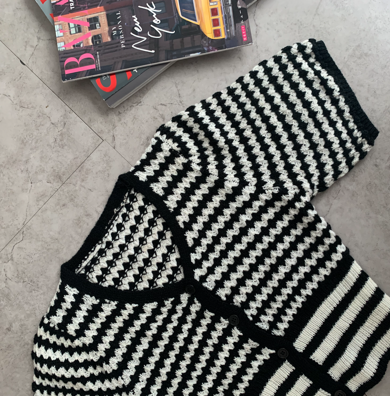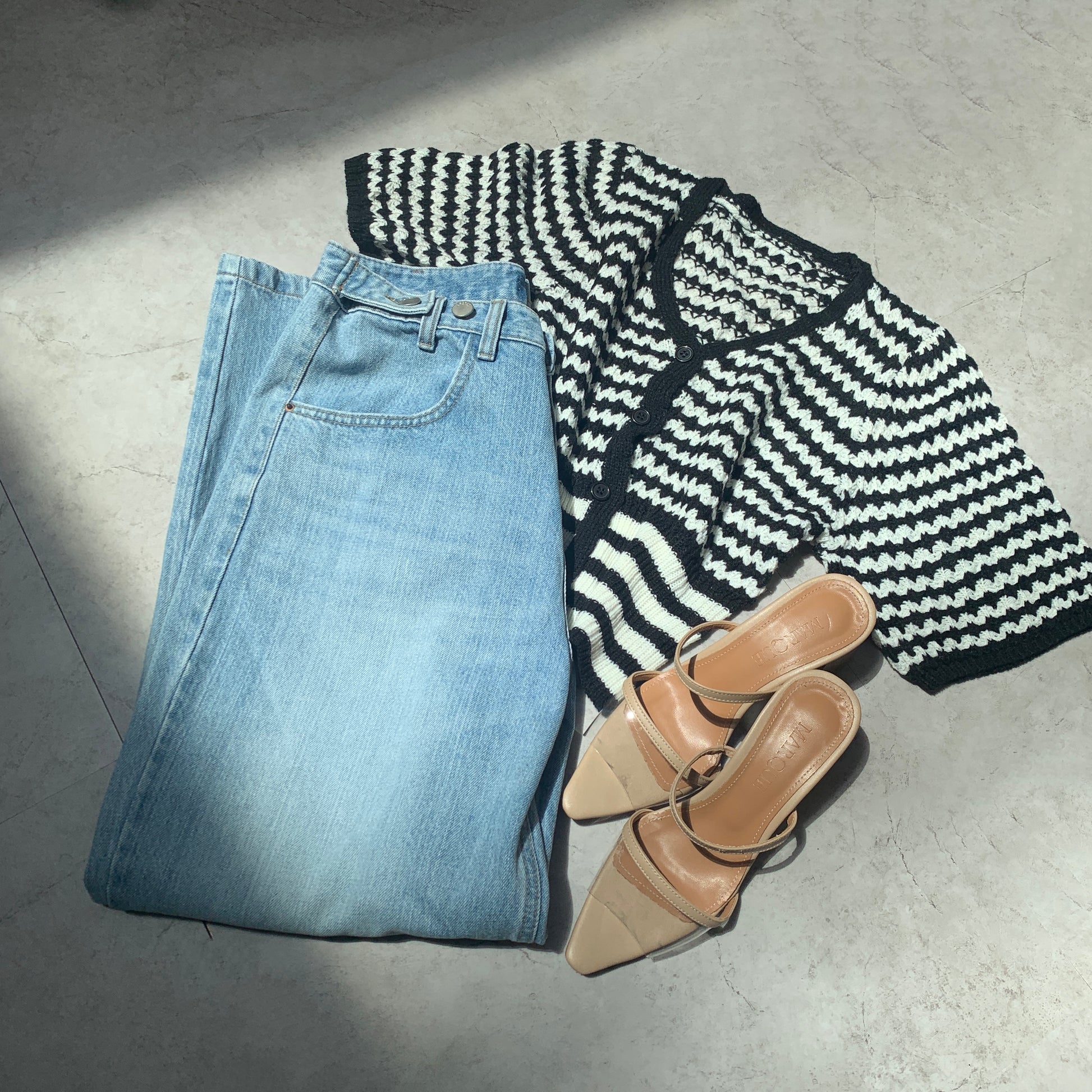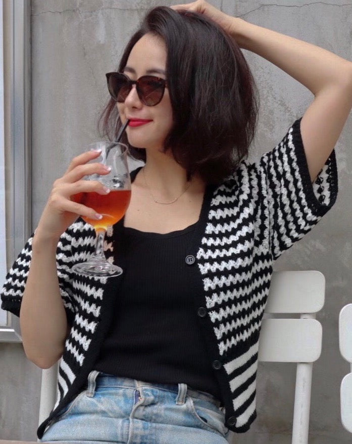 このボーダートップスは、Vネックのラインが女性らしさを引き出し、さらにサマーニット素材なので夏でも涼しげに着ていただけます。暑い季節でも涼しさを保ちつつ、おしゃれを楽しめる一枚です。また、冷房の寒さから身を守るためにも最適です。さまざまなシーンで活躍する、夏のマストアイテムです!